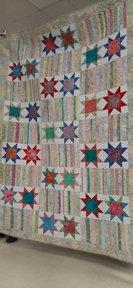 Myrna M brought us her blue log cabin quilt. This gorgeous quilt was quilted by the Burtts Corner group.